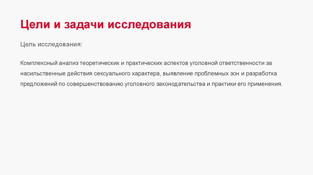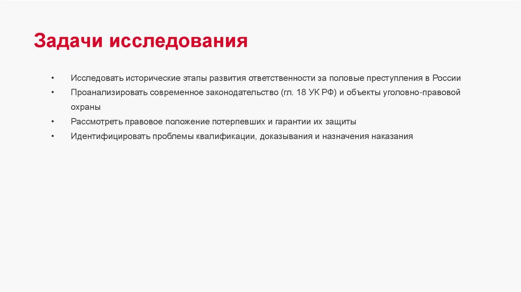 Задачи исследованияИсследовать исторические этапы развития ответственности за половые преступления в России