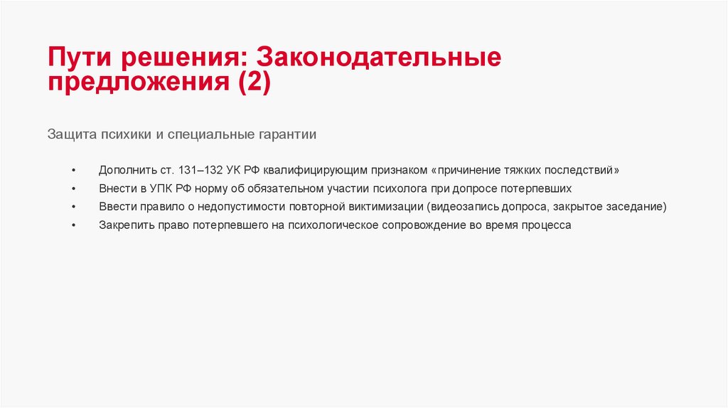 В УПК РФ детализировать статус потерпевших, расширив гарантии для уязвимых групп