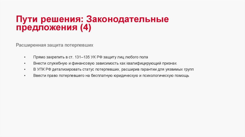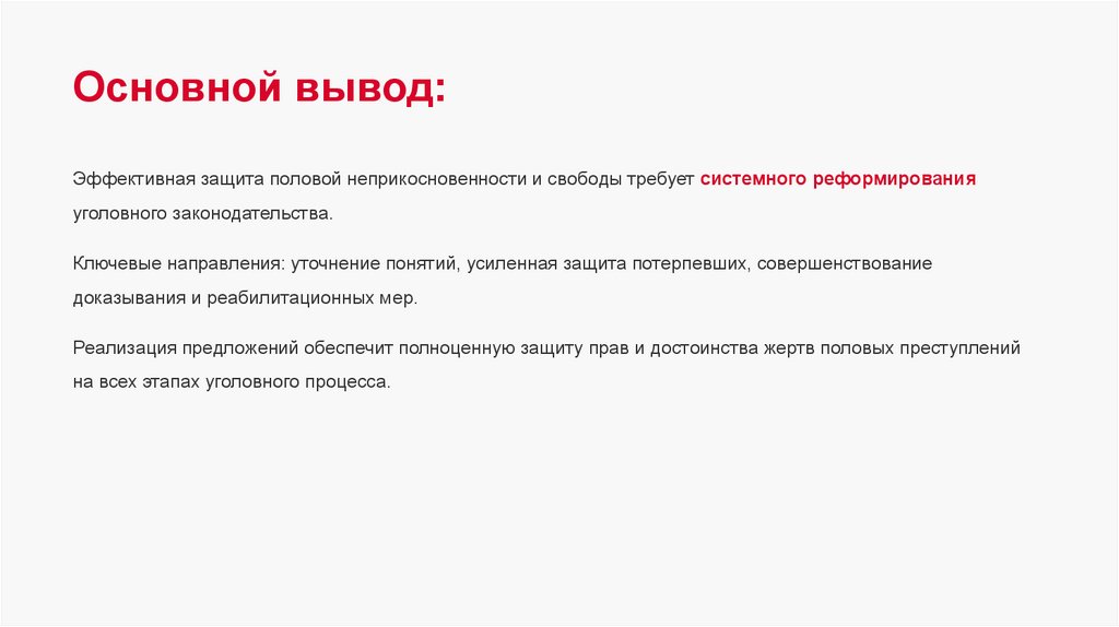 Основной вывод:Эффективная защита половой неприкосновенности и свободы требует системного реформирования