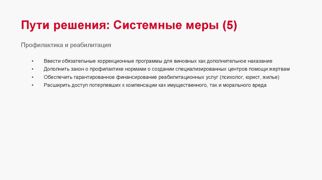 Пути решения: Системные меры (5)Профилактика и реабилитация