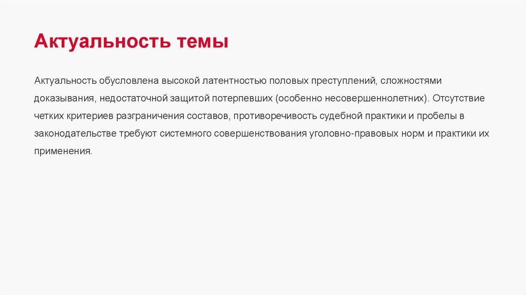 Актуальность темыАктуальность обусловлена высокой латентностью половых преступлений, сложностями
