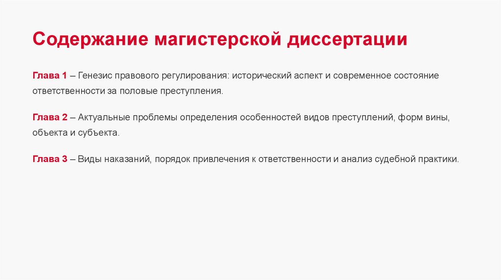 Содержание магистерской диссертацииГлава 1 – Генезис правового регулирования: исторический аспект и современное состояние