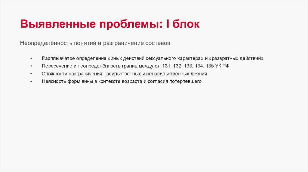 Выявленные проблемы: I блокНеопределённость понятий и разграничение составов