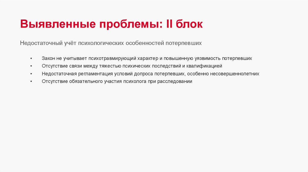 Выявленные проблемы: II блокНедостаточный учёт психологических особенностей потерпевших