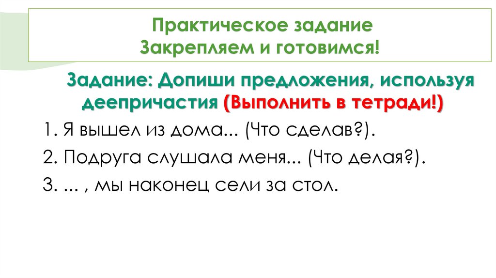 Деепричастия совершенного и несовершенного вида. Подготовка к сочинению в