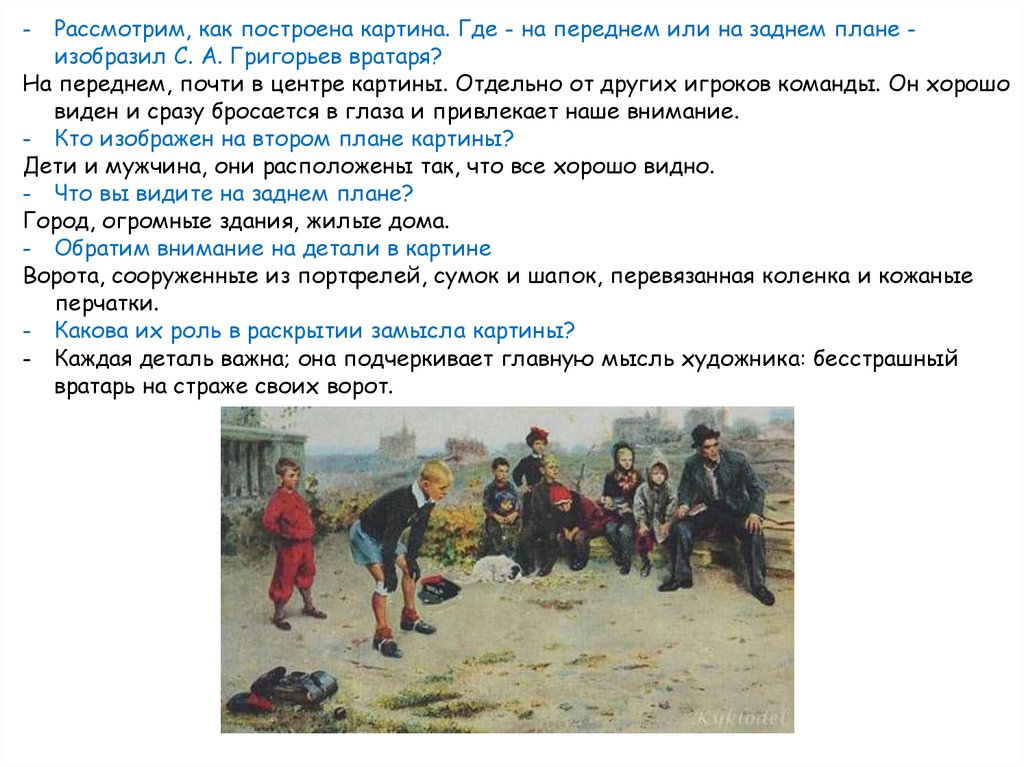 Подготовка к написанию сочинения по картине Григорьева _Вратарь_
