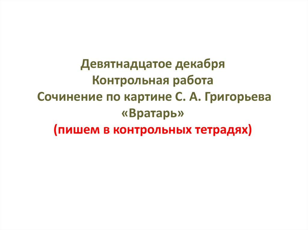 Проработайте презентацию и напишитеконтрольное сочинение по картине С.А.