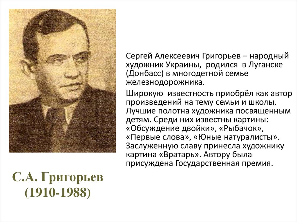 Сергей Алексеевич Григорьев – народныйхудожник Украины, родился в Луганске