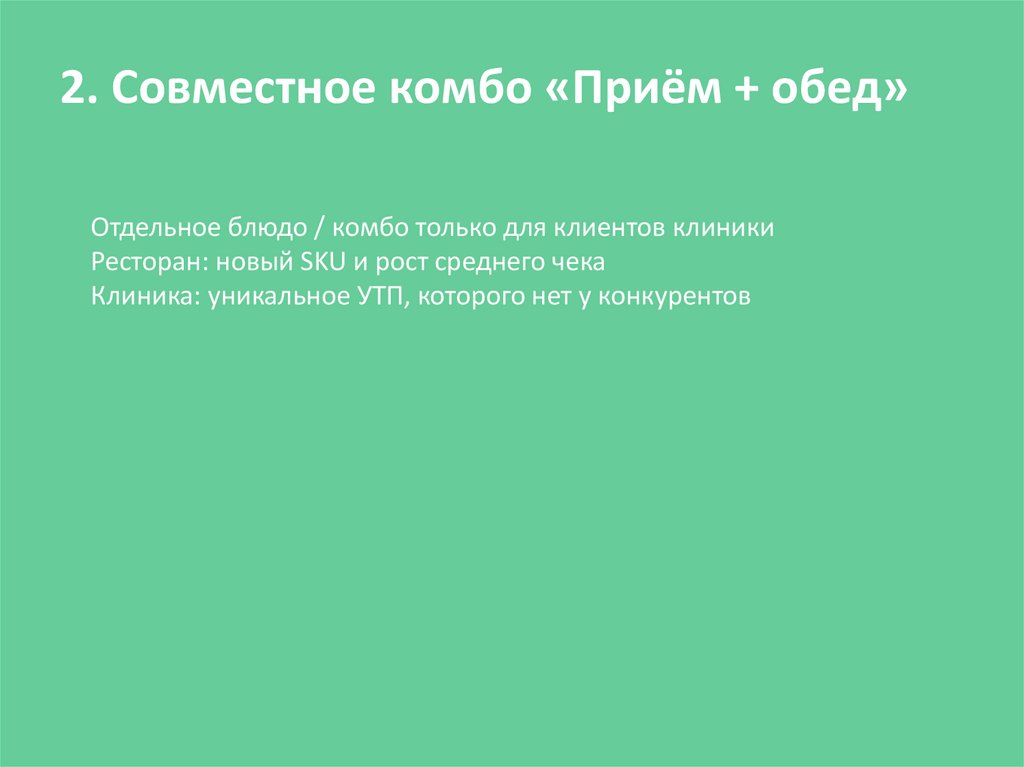 2. Совместное комбо «Приём + обед»Отдельное блюдо / комбо только для клиентов клиники