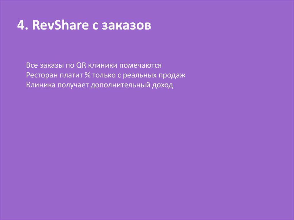 4. RevShare с заказовВсе заказы по QR клиники помечаются