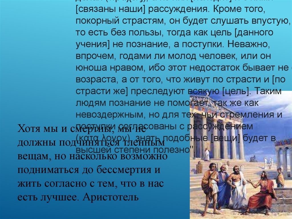 Аристотель для того и исследует этические проблемы, чтобы помочь людям стать