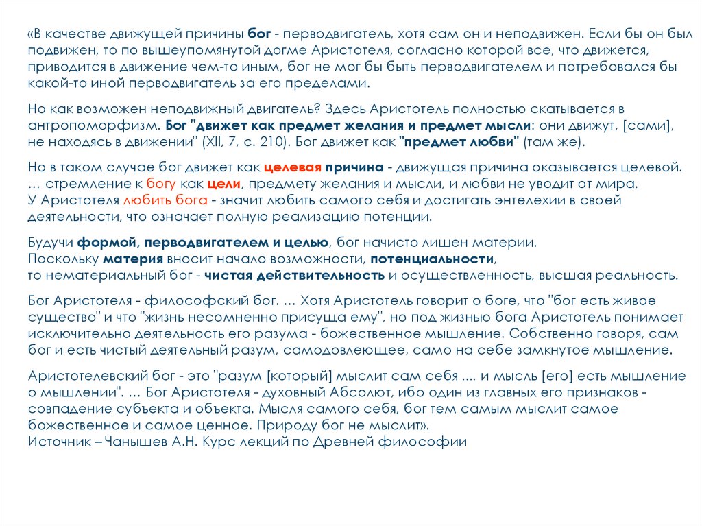 Этика Аристотеля телеологична — она исходит из принципа, что в человеке, как иво всякой вещи, заложено внутреннее стремление к благой цели и