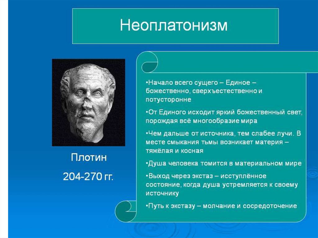 5. Неоплатонизм (Плотин (3 в. н.э.)).