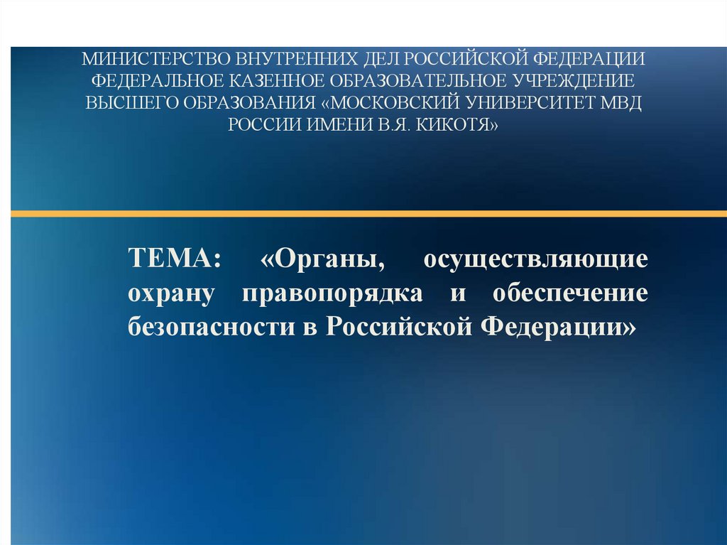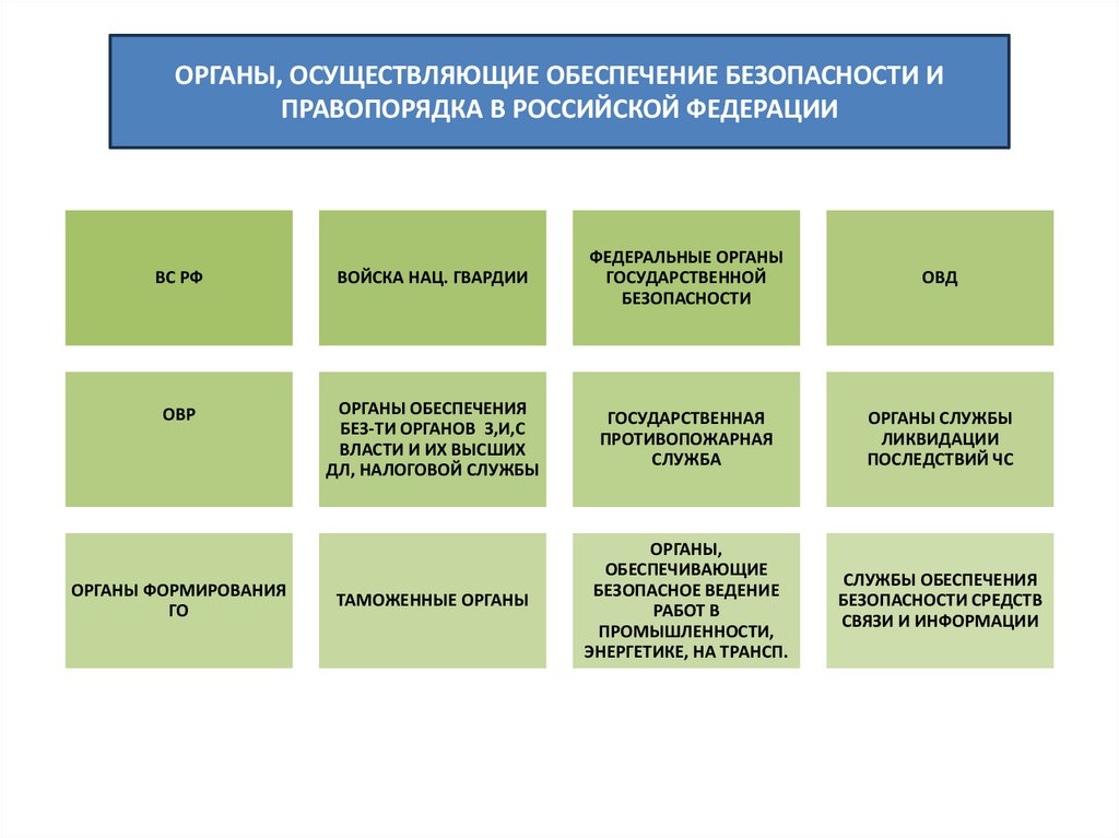 ОРГАНЫ, ОСУЩЕСТВЛЯЮЩИЕ ОБЕСПЕЧЕНИЕ БЕЗОПАСНОСТИ ИПРАВОПОРЯДКА В РОССИЙСКОЙ ФЕДЕРАЦИИ