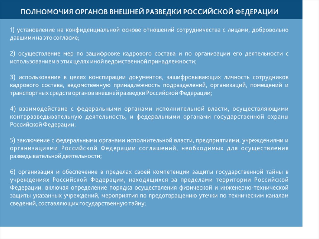 5. Федеральный закон от 10.01.1996 № 5-ФЗ «О внешней разведке» (с послед. изм. и доп.). //