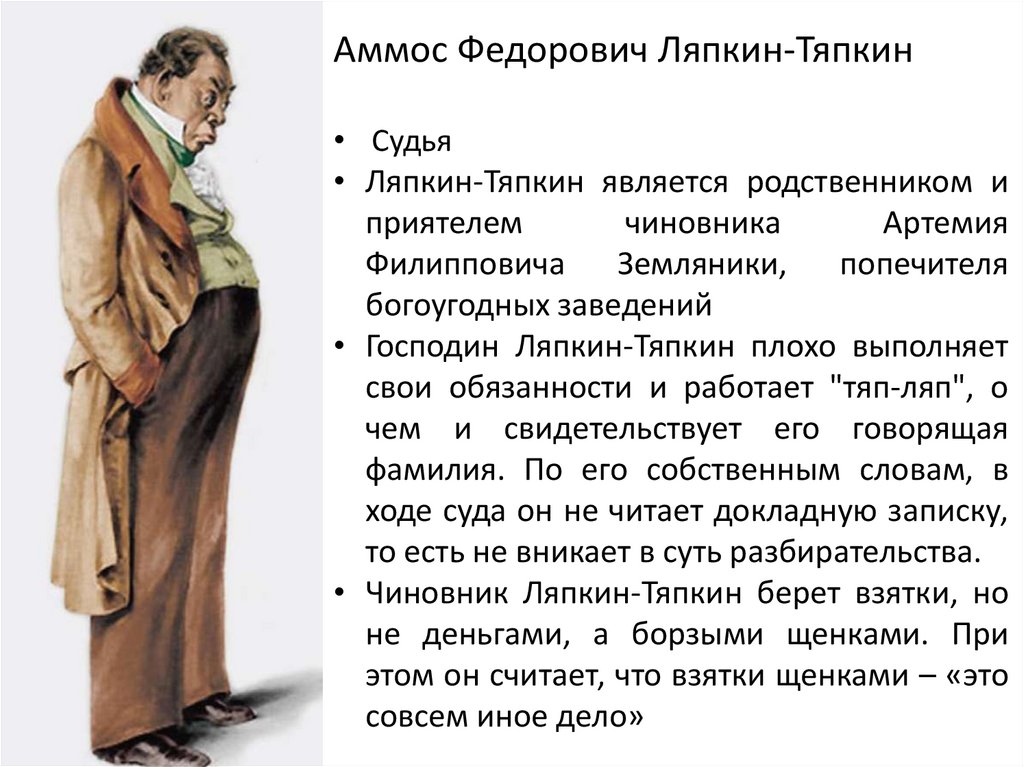 • Чиновник Ляпкин-Тяпкин берет взятки, но