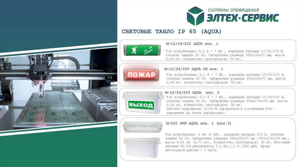 СВЕТОВЫЕ ТАБЛО IP 65 (AQUA)М-12/24/220 AQUA исп. 1