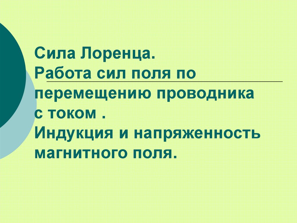 1. Сила Лоренца. Работа сил поля по перемещению проводника с током . Индукция и напряженность магнитного поля.