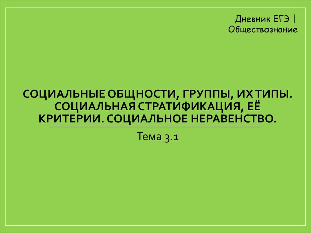 Тема 3.1 Социальные общности, группы, их типы. Социальная стратификация, её критерии