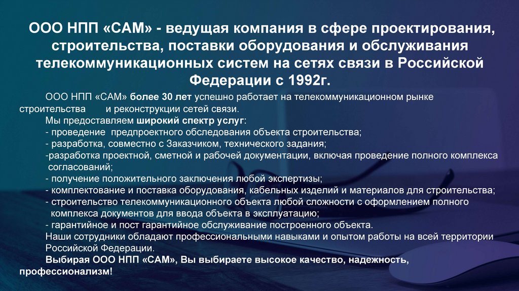 ООО НПП «САМ» более 30 лет успешно работает на телекоммуникационном рынке