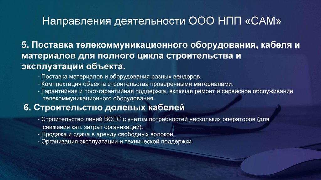 Направления деятельности ООО НПП «САМ»5. Поставка телекоммуникационного оборудования, кабеля и