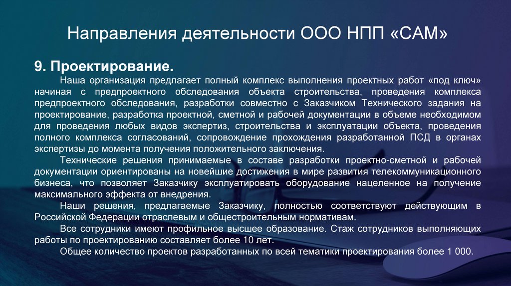 Направления деятельности ООО НПП «САМ»9. Проектирование.