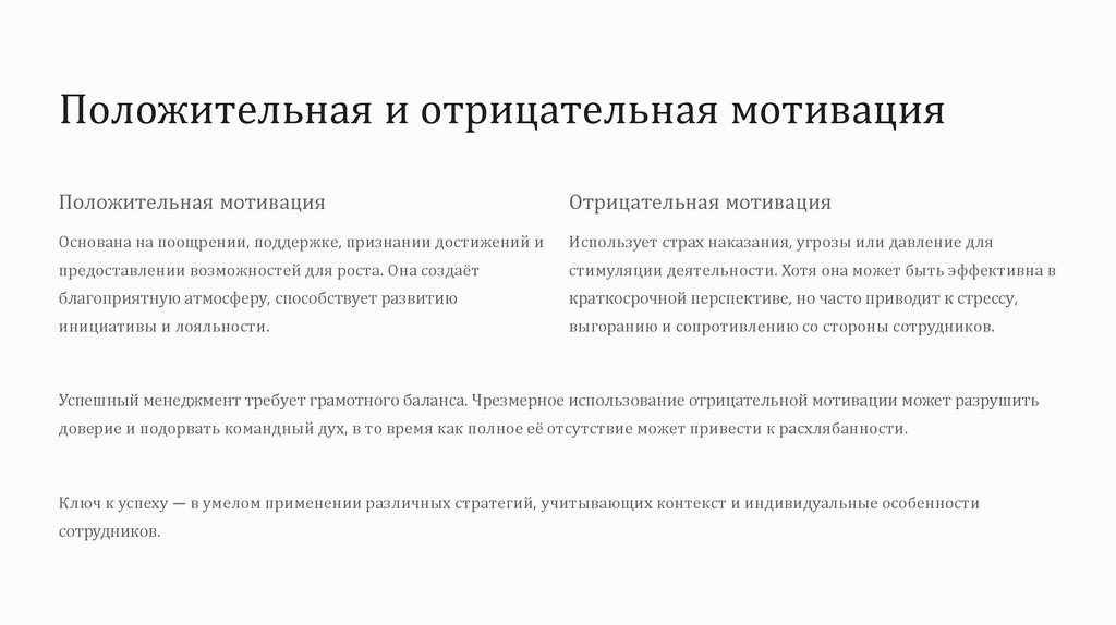 Успешный менеджмент требует грамотного баланса. Чрезмерное использование отрицательной мотивации может разрушить