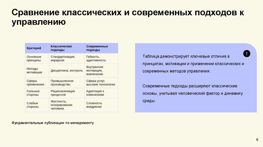 Сравнение классических и современных подходов куправлению