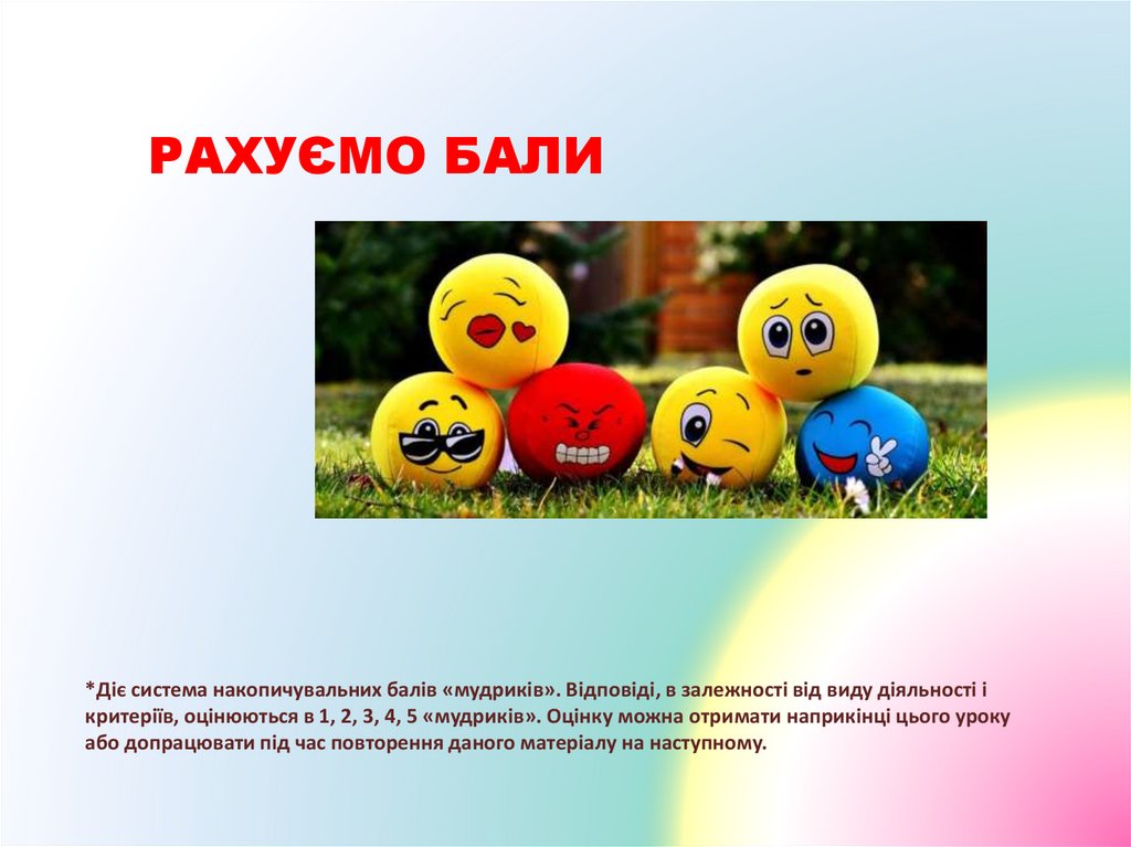РАХУЄМО БАЛИ*Діє система накопичувальних балів «мудриків». Відповіді, в залежності від виду діяльності і