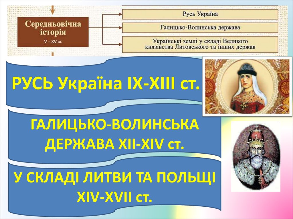• У період середньовіччя в ІХ ст. на землях сучасної Українипостає давня держава Русь-Україна як об’єднання