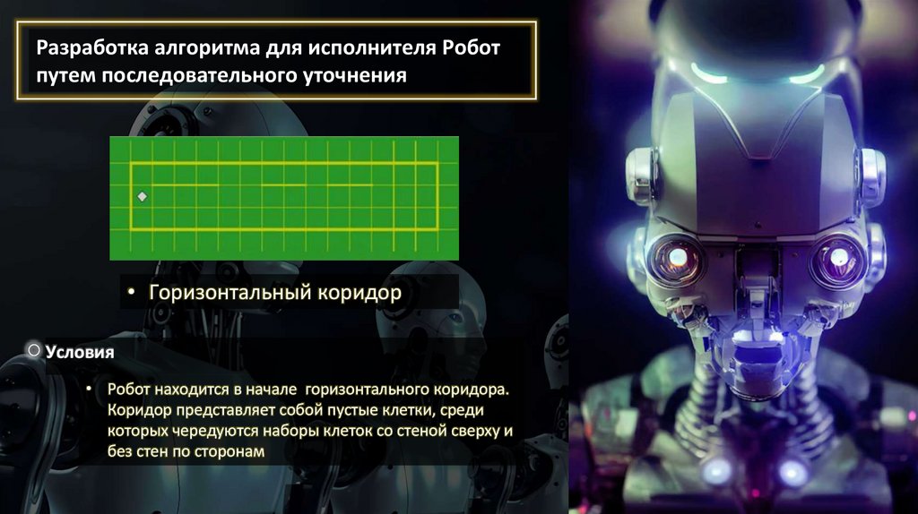• Робот находится в начале горизонтального коридора.