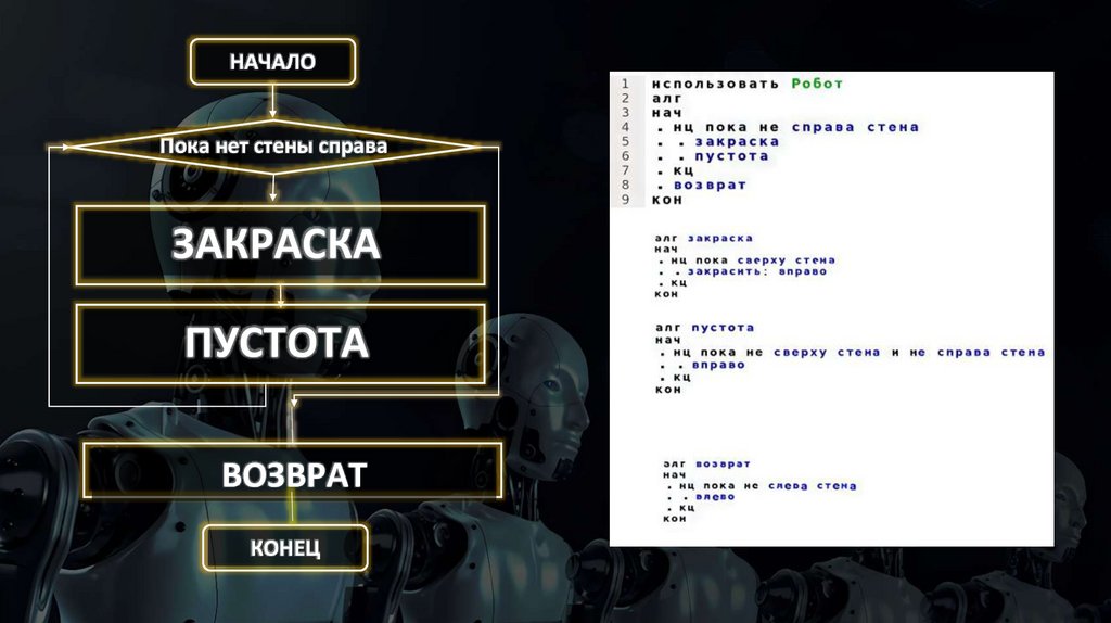 • Затем Роботу нужно вернуться в исходное