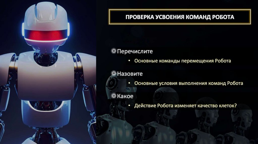 ПРОВЕРКА УСВОЕНИЯ КОМАНД РОБОТАПеречислите