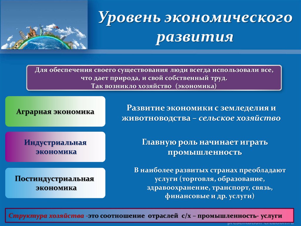 Структура хозяйства -это соотношение отраслей с/х – промышленность- услуги