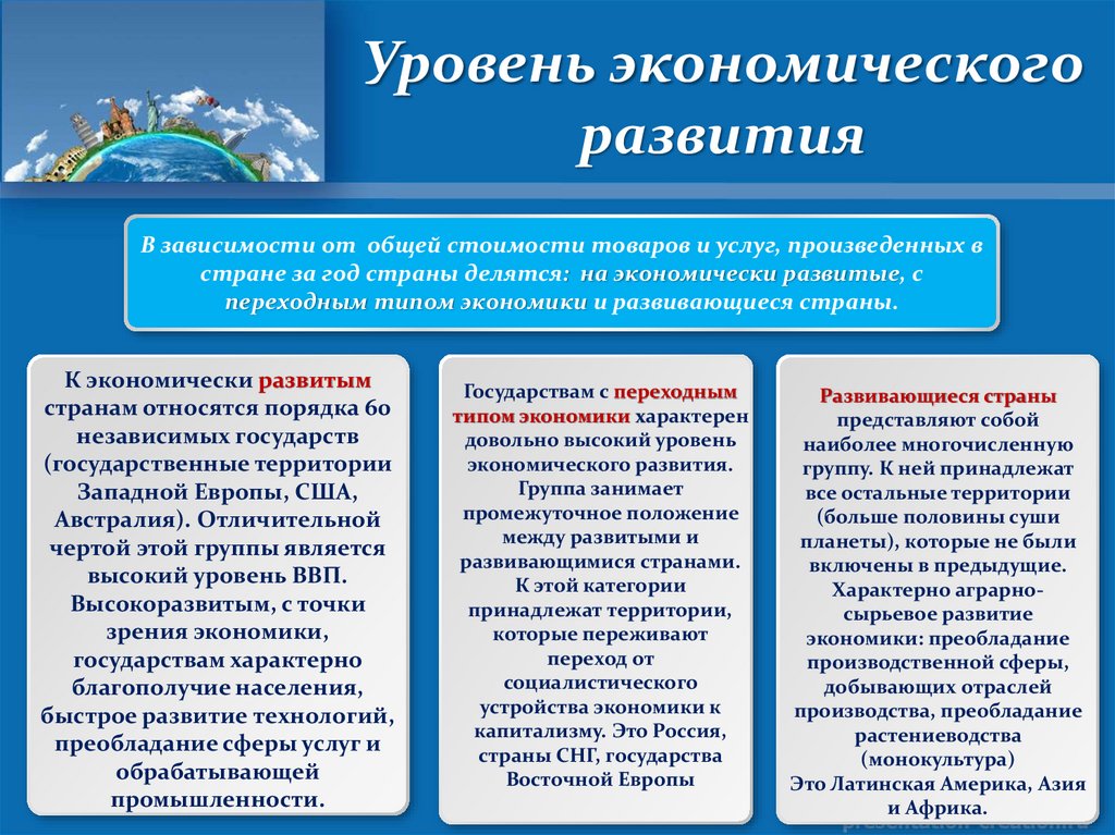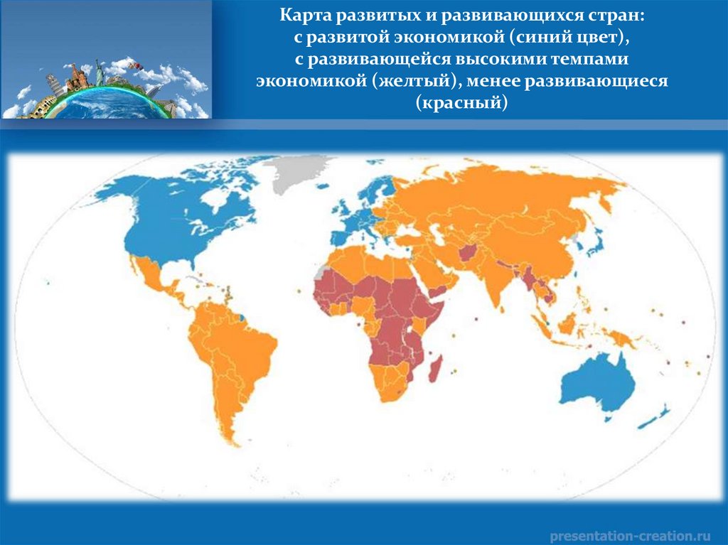 Карта развитых и развивающихся стран:с развитой экономикой (синий цвет),