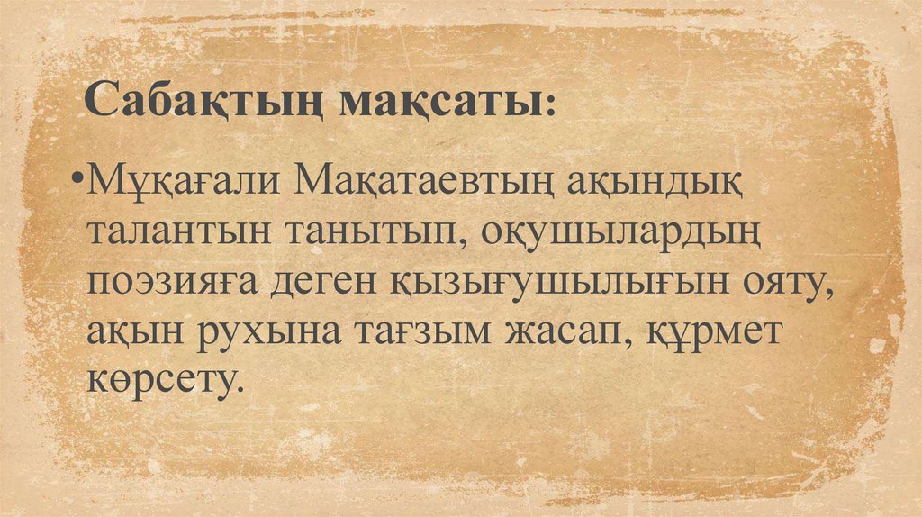 Сабақтың мақсаты:•Мұқағали Мақатаевтың ақындық