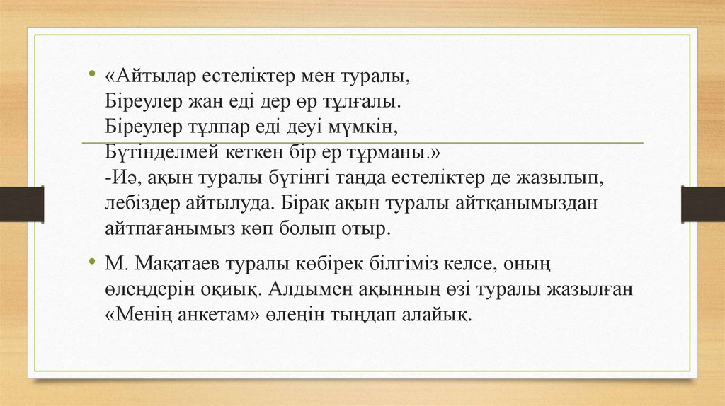 өлеңдерін оқиық. Алдымен ақынның өзі туралы жазылған
