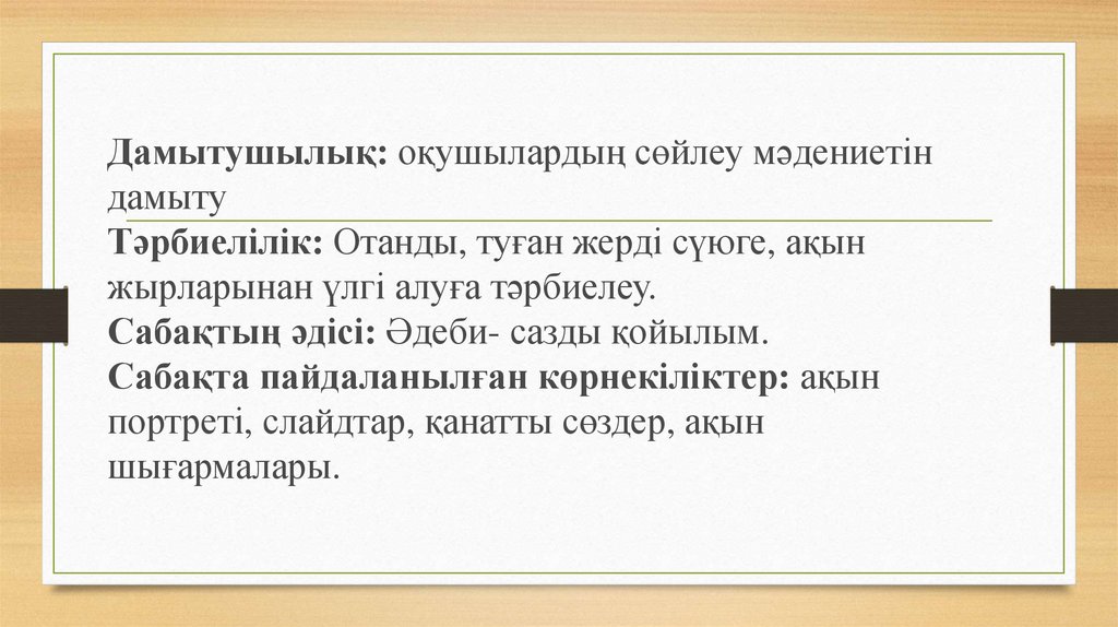 Сабақта пайдаланылған көрнекіліктер: ақын