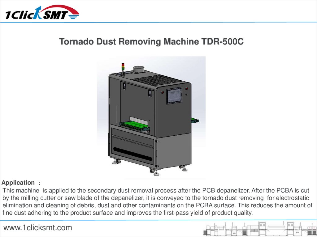 by the milling cutter or saw blade of the depanelizer, it is conveyed to the tornado dust removing for electrostatic