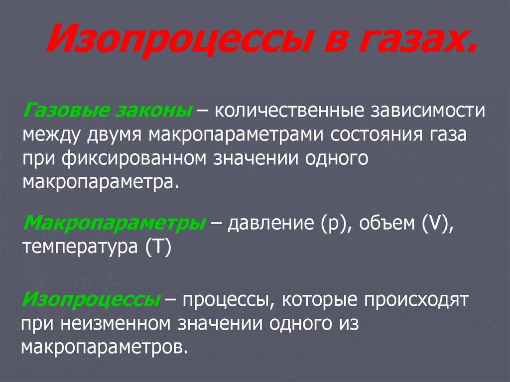 Изопроцессы – процессы, которые происходят