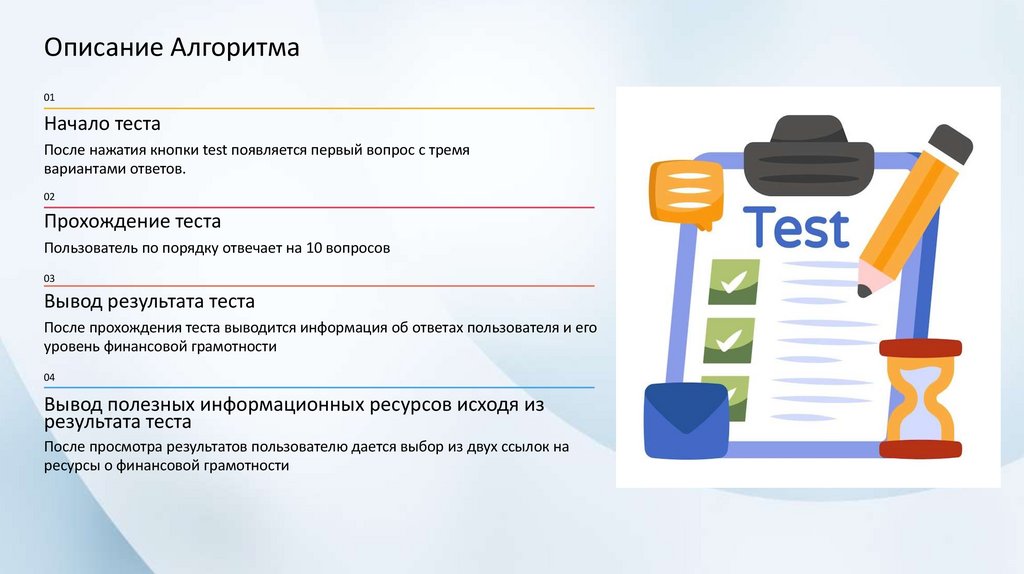 Предоставление интерактивного теста о финансовой