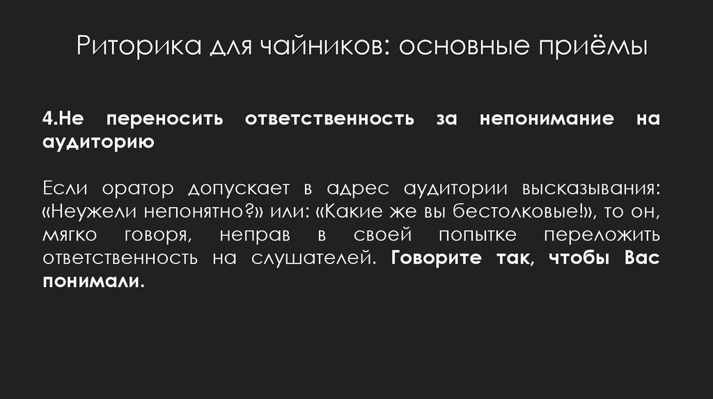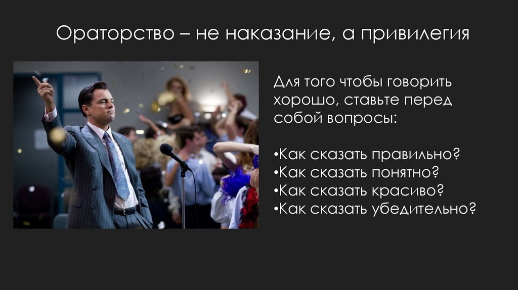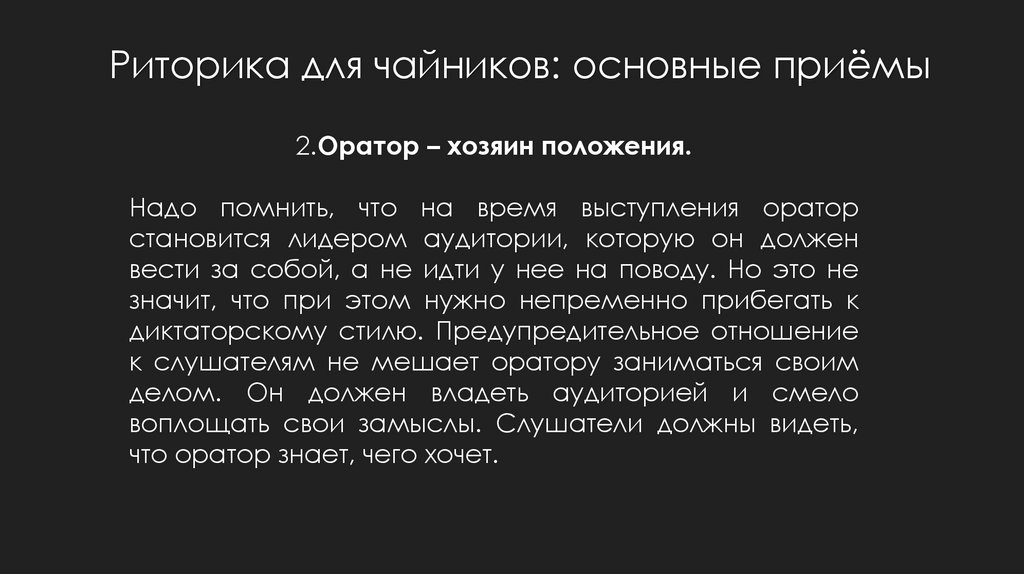 (регламент), вызывать необходимые реакции в аудитории, делать