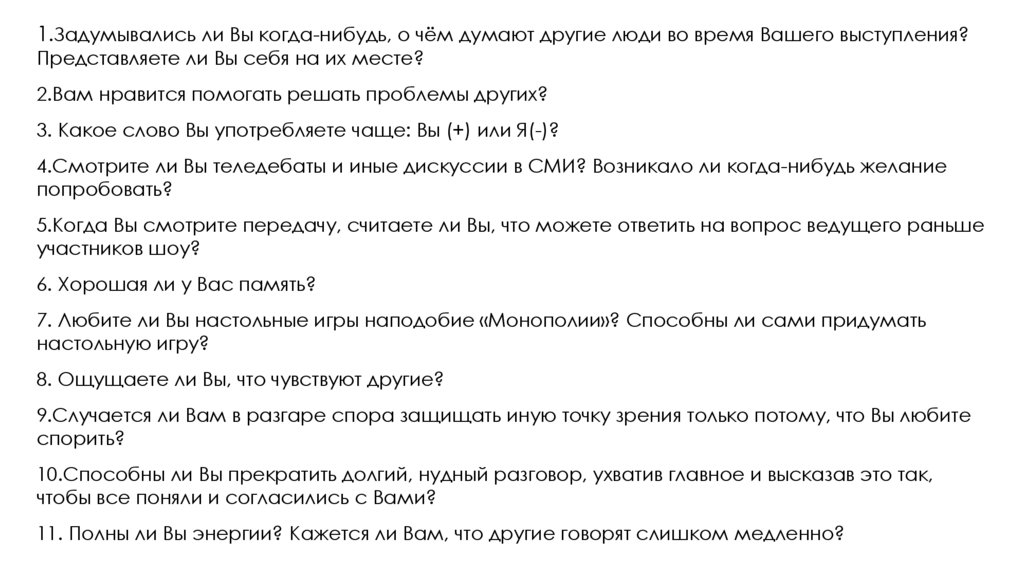 презентацию, вести переговоры, отстаивать свое мнение, отвечать на