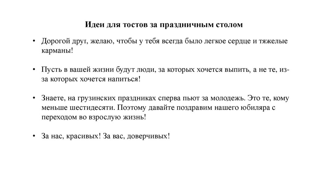 вопросы, слушать, произносить тосты, поздравлять, представлять, делать