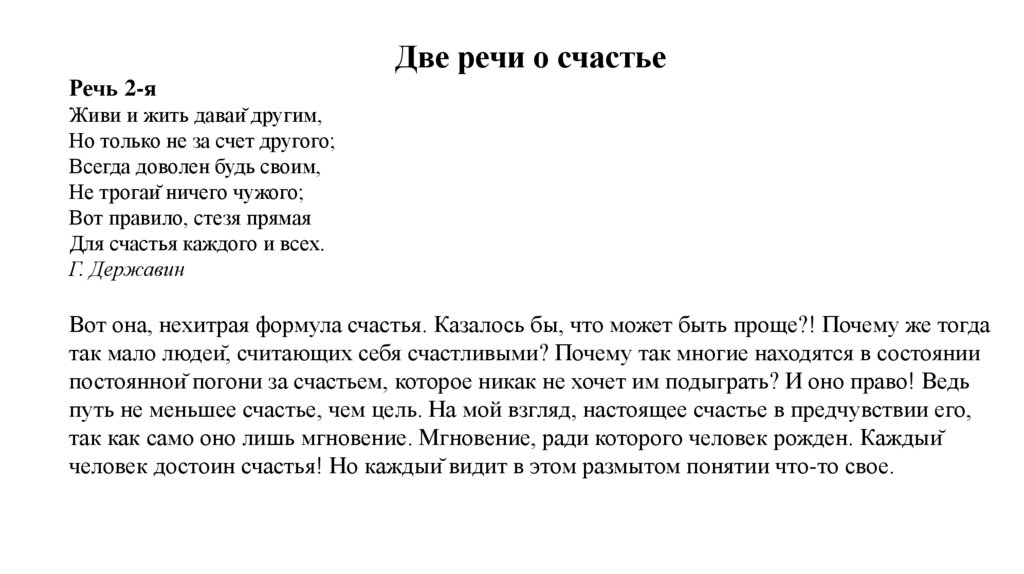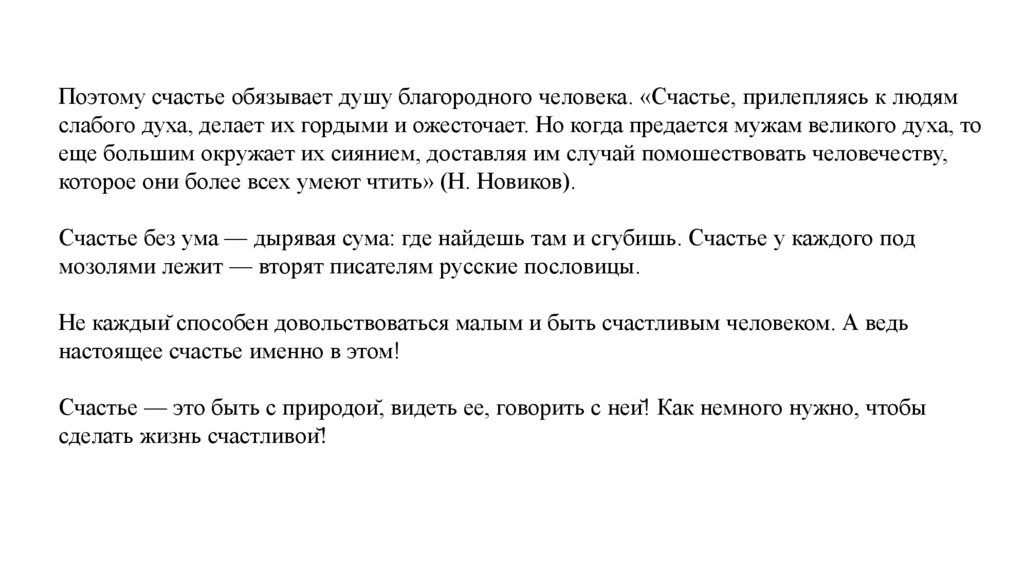 интересно то, что в одном маленьком слове «счастье» мы заключаем огромный смысл. То