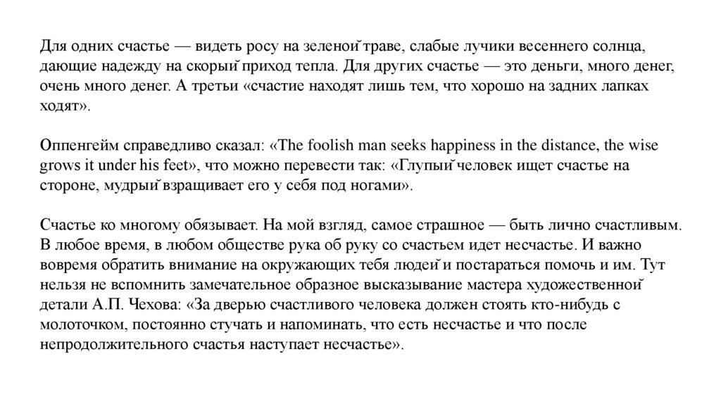 Оппенгейм справедливо сказал: «The foolish man seeks happiness in the distance, the wise