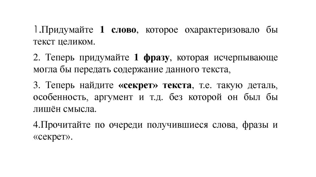 1.Придумайте 1 слово, которое охарактеризовало бытекст целиком.