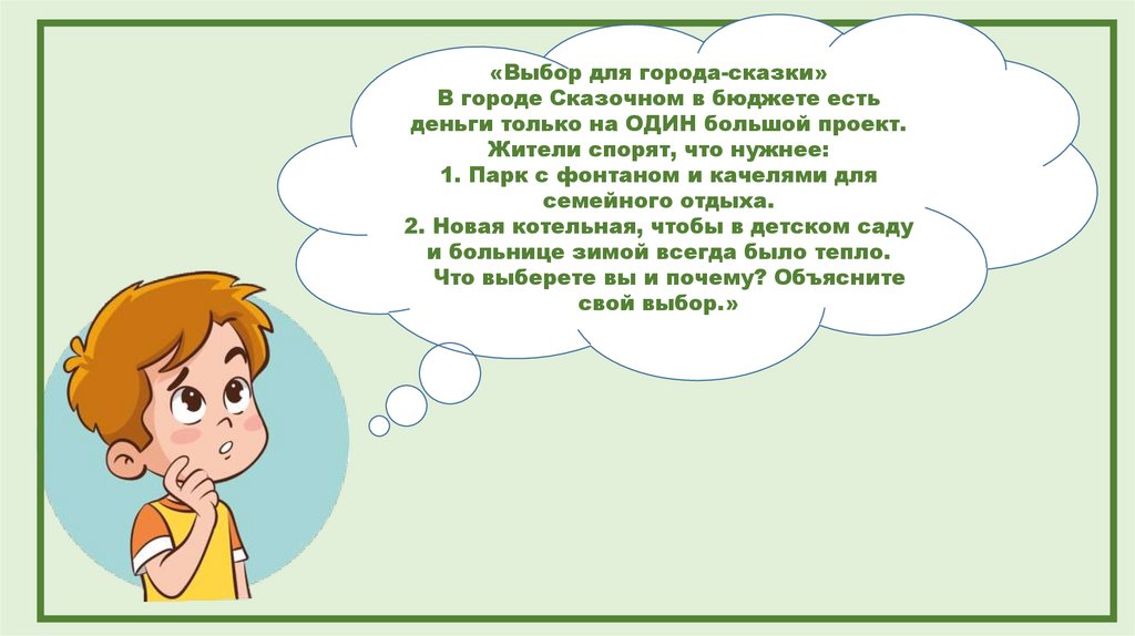 «Выбор для города-сказки»В городе Сказочном в бюджете есть