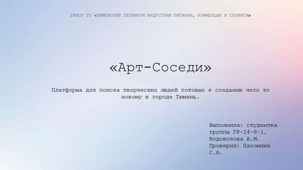 ГАПОУ ТО «ТЮМЕНСКИЙ ТЕХНИКУМ ИНДУСТРИИ ПИТАНИЯ, КОММЕРЦИИ И СЕРВИСА»«Арт-Соседи»