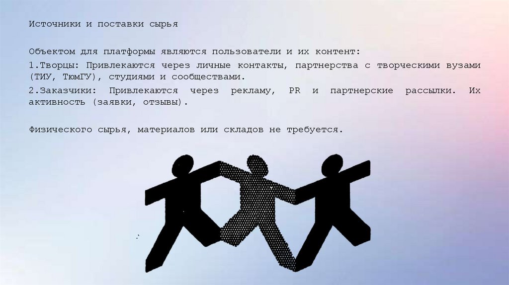 Источники и поставки сырьяОбъектом для платформы являются пользователи и их контент: